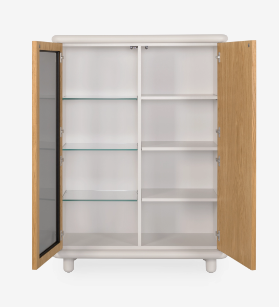 Showcase with lighting and sensor, 2 doors in natural oak, pearl structure.